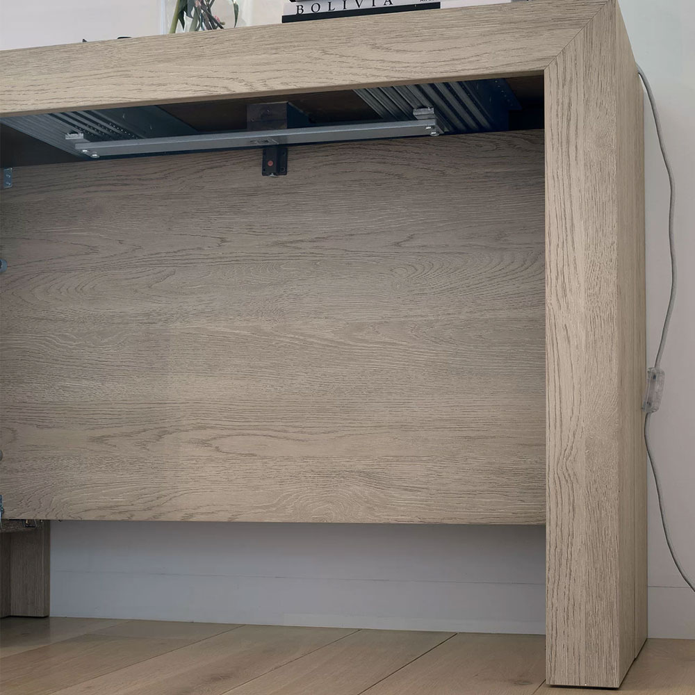 Consola extensibila, laminata, cu compartiment pentru depozitarea extensiilor.