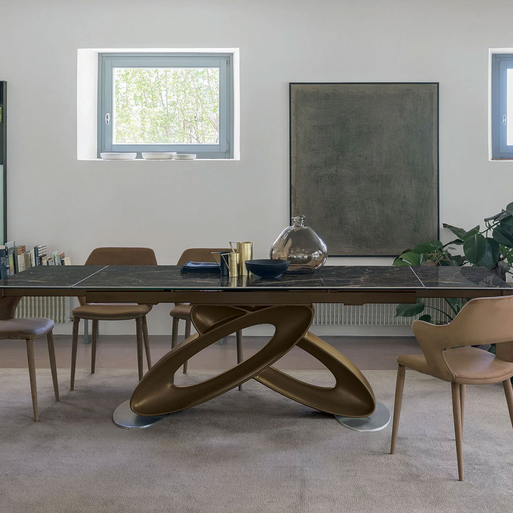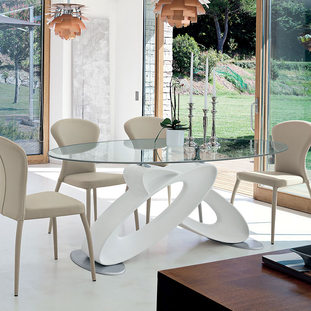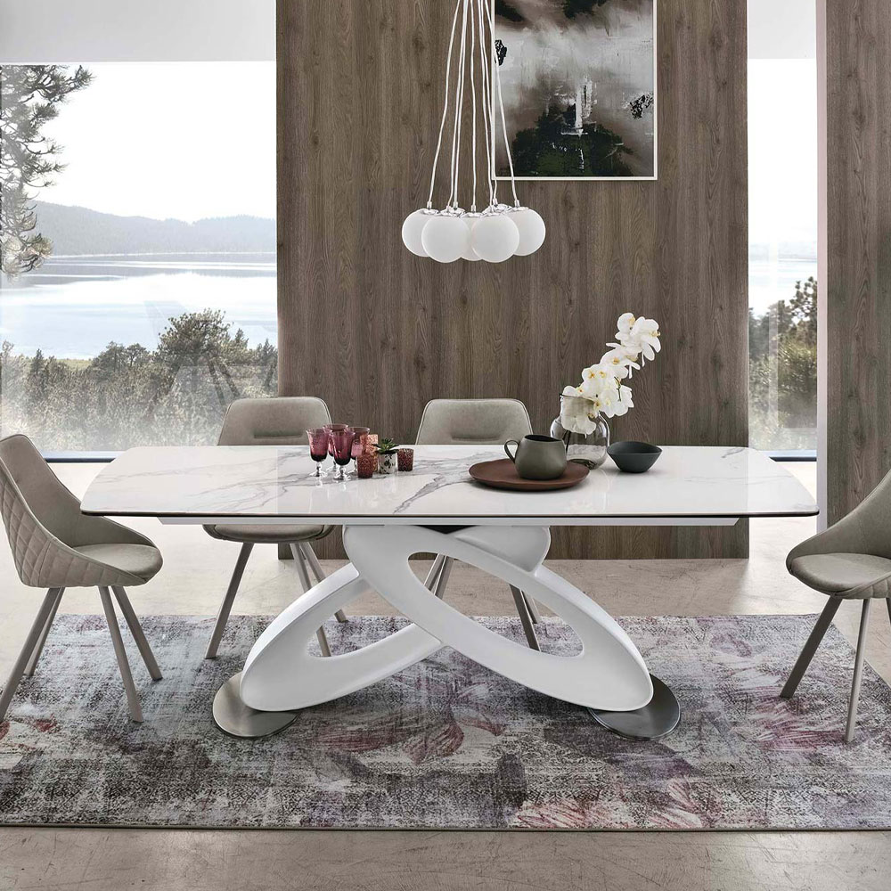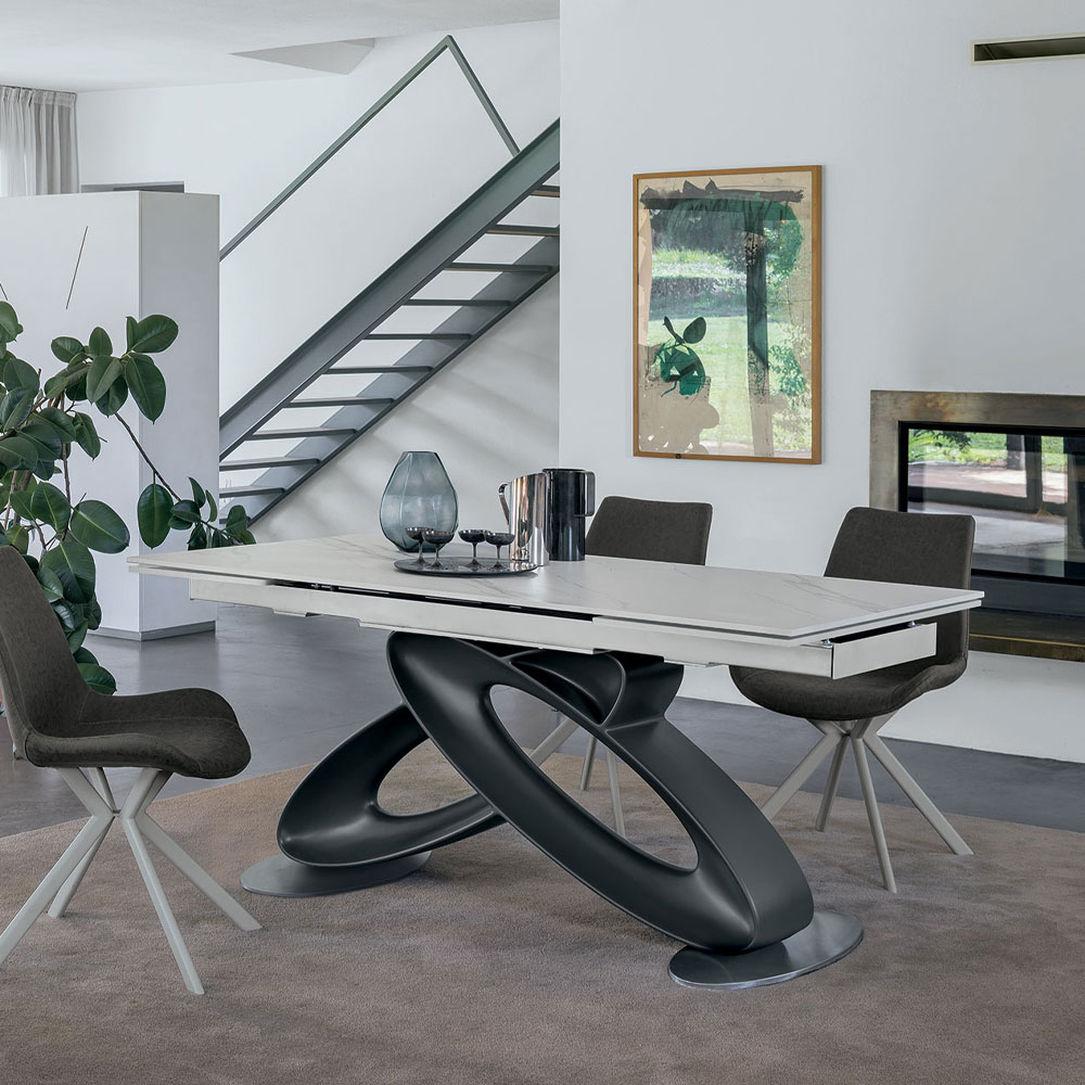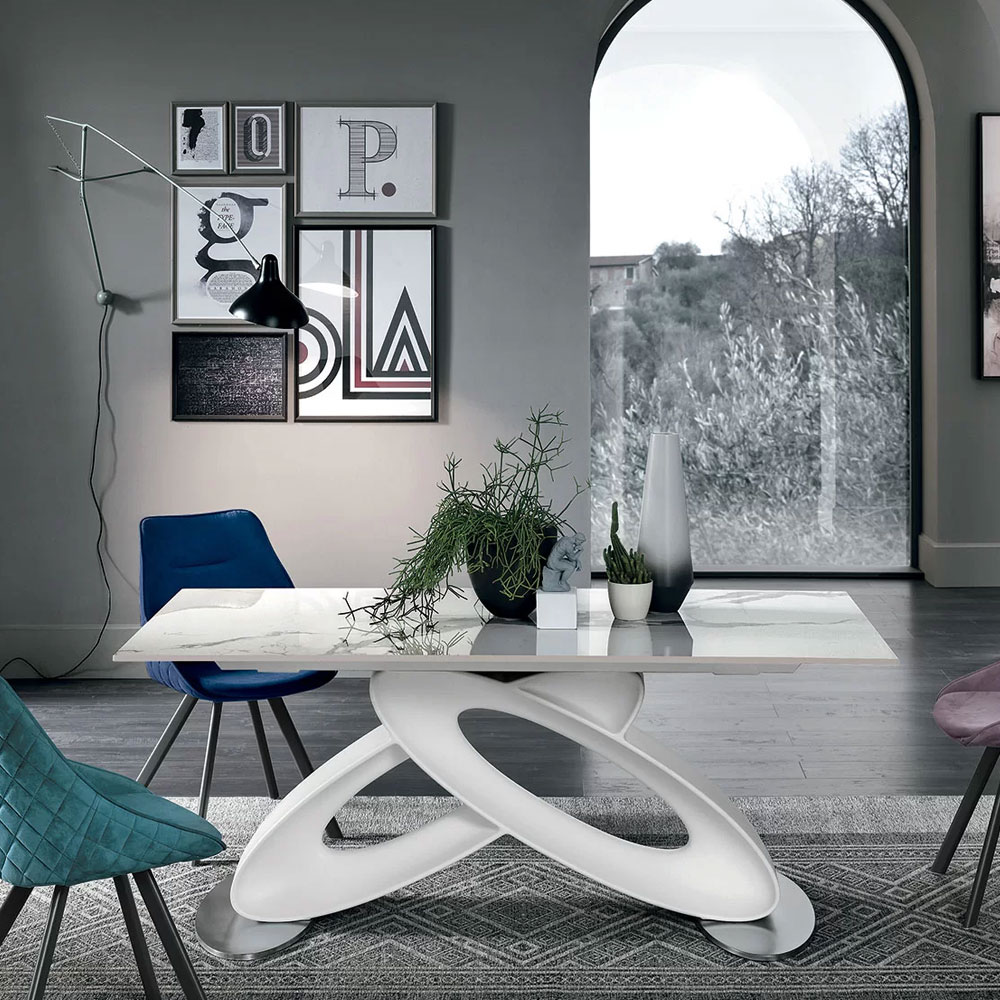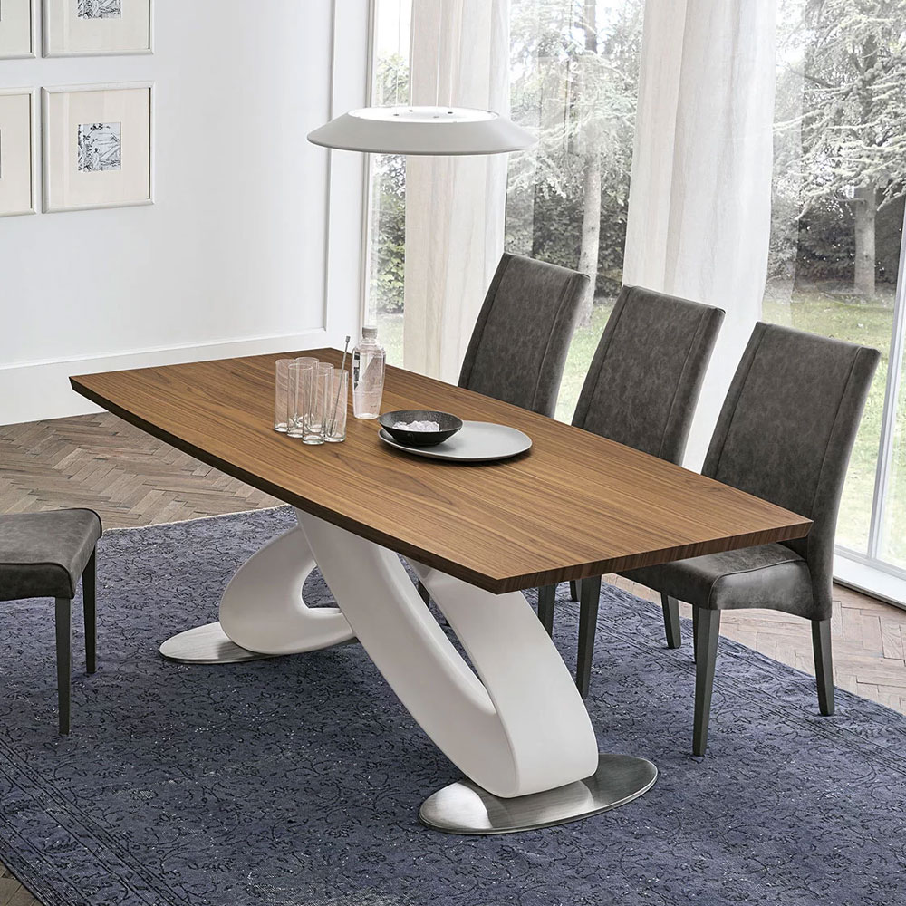 Masa cu baza din poliuretan si diferite tipuri de blat, inclusiv extensibil.