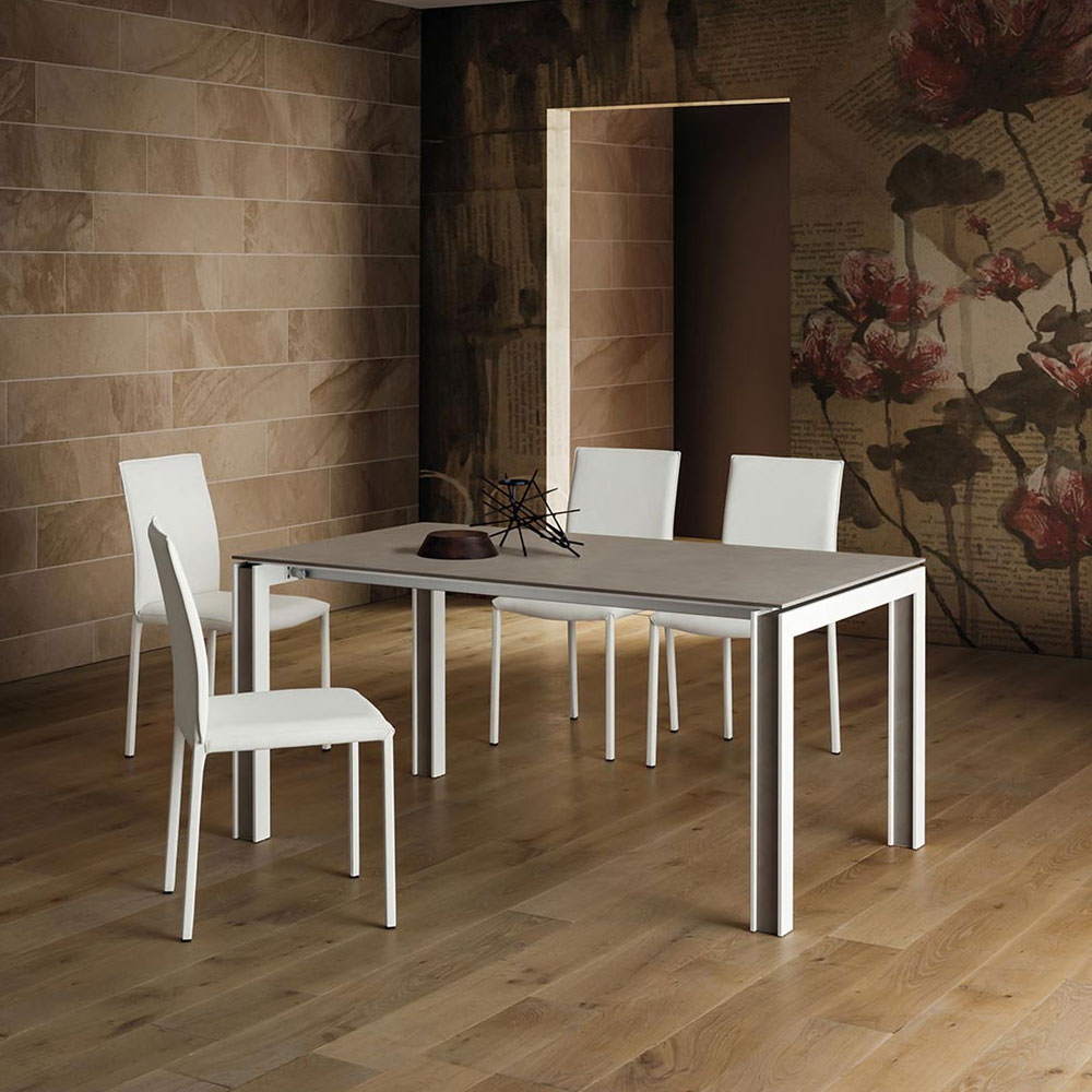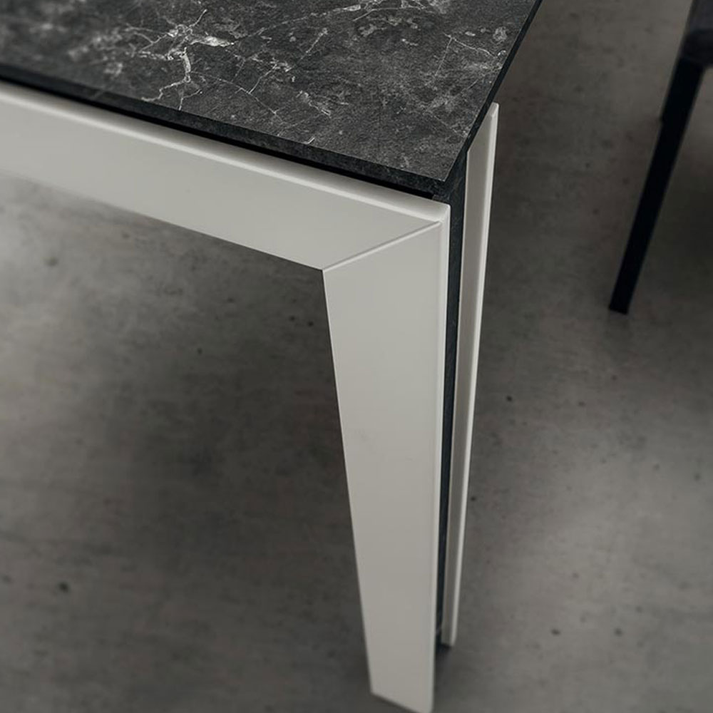 Masa cu picioare din lemn masiv de fag lacuit si blat acoperit cu HPL sau sticla securizata de 10 mm sustinuta de panoul melaminat.