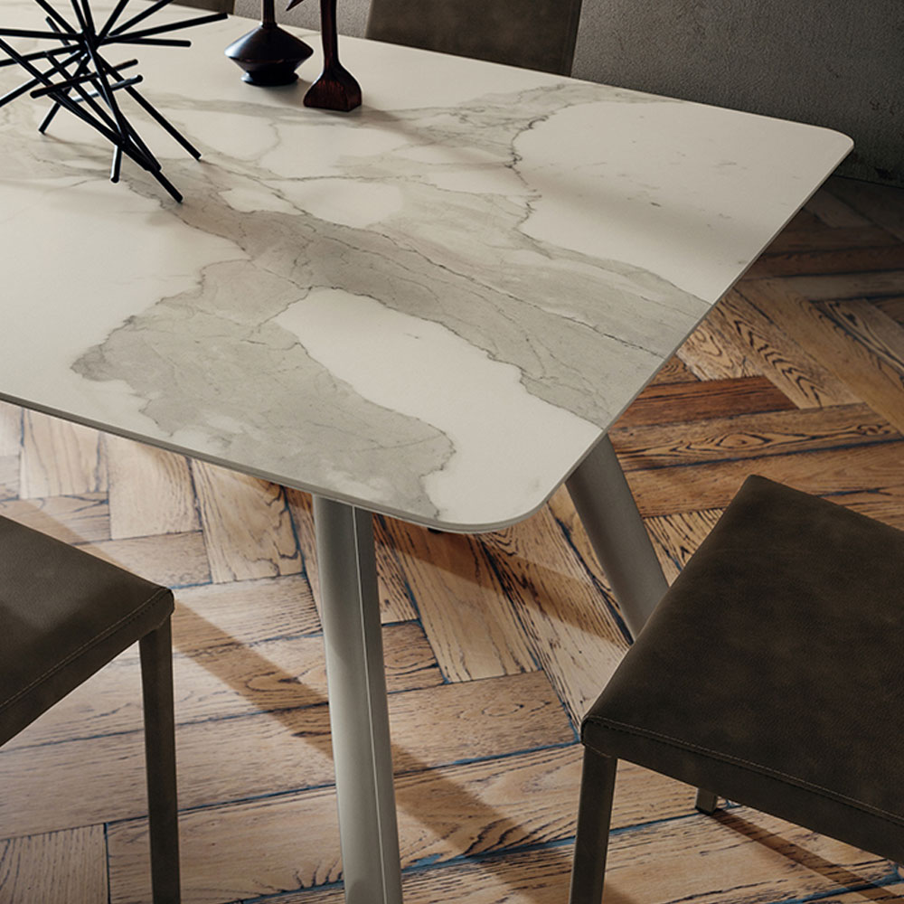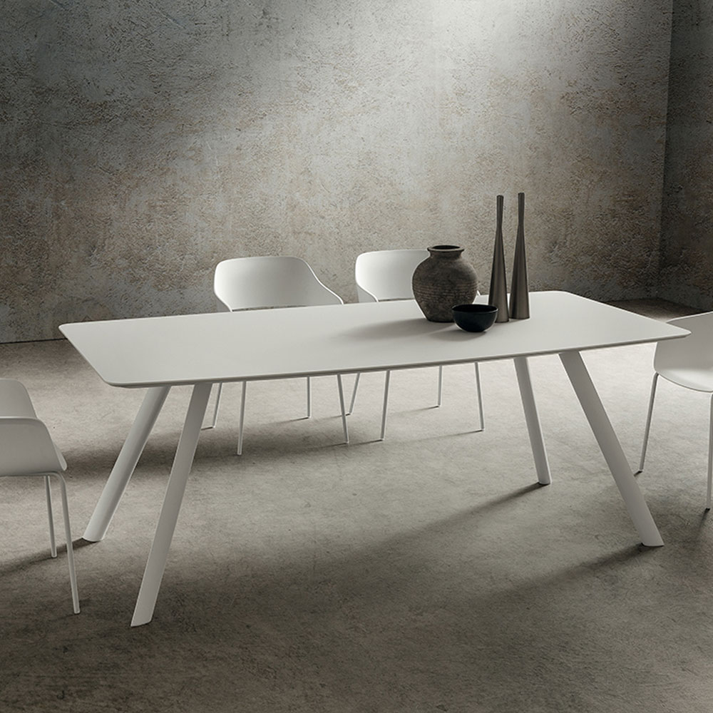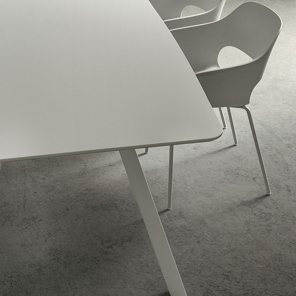 Masa cu picioare din aluminiu extrudat lacuit cu pulbere epoxidica si diferite structuri de blat.