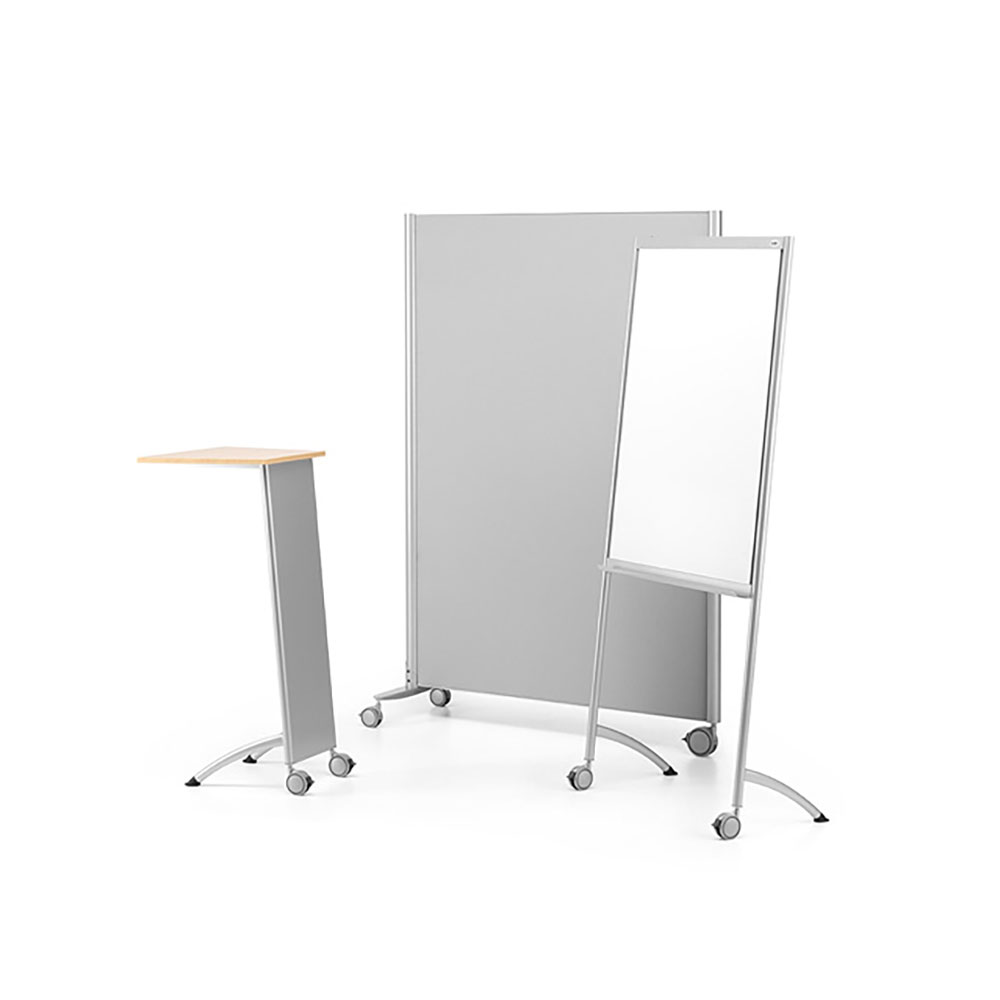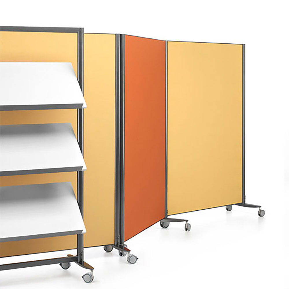 Panouri cu roti si strutura interioara tapitata. Ideal pentru birouri, biblioteci, sali de lectura, sali de clasa sau sali de sedinta.